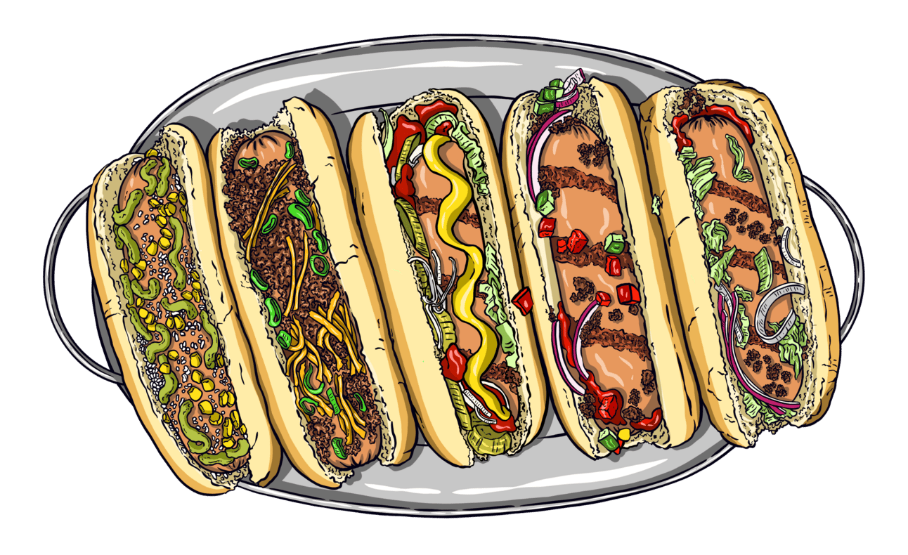 Get some extra ingredients, use what you have around, or host a loaded dog party: you provide the meat and buns, and everyone else brings a topping.
