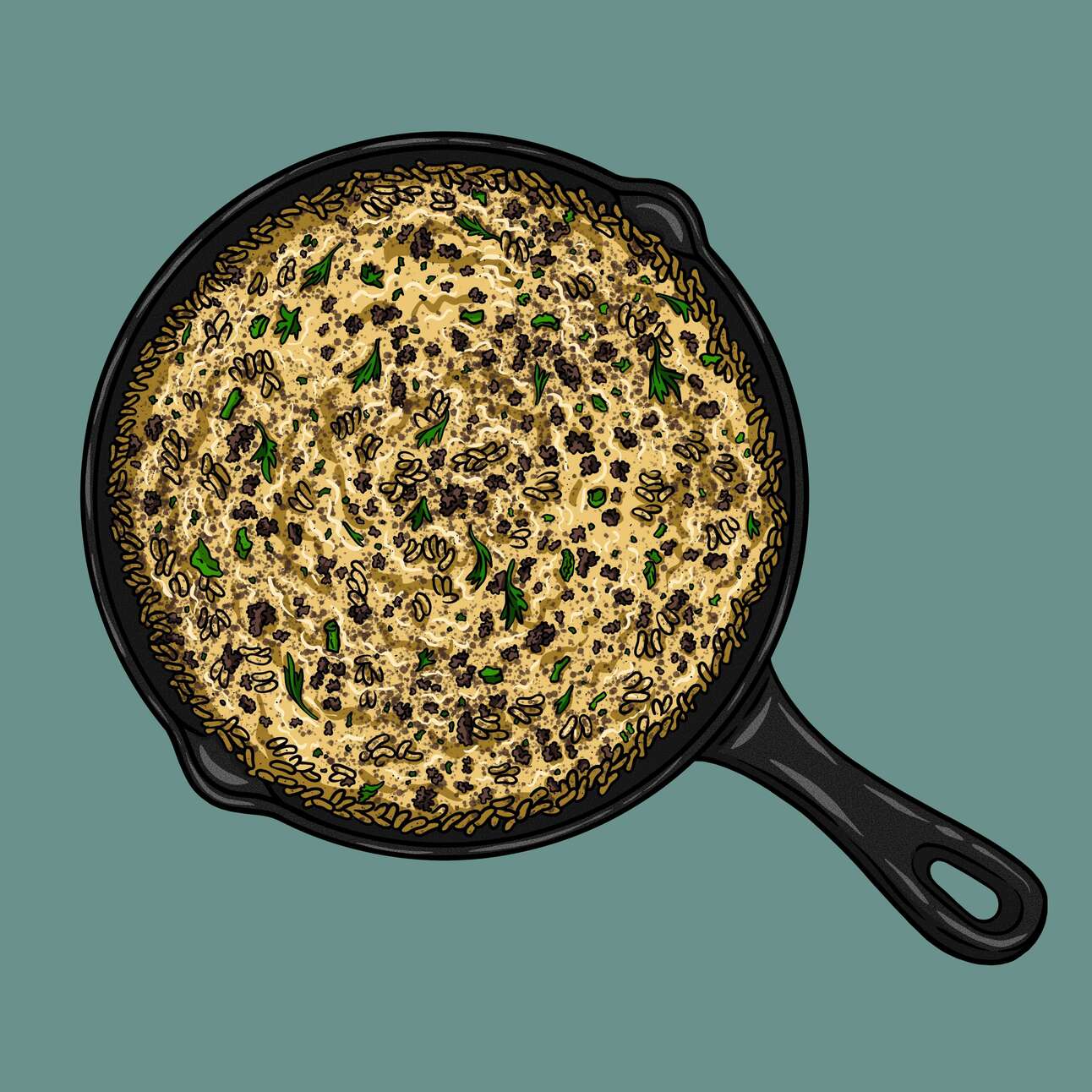 Go ahead and prep a bunch of frozen Cajun trinity so you can make this dirty rice recipe on the fly. It’s an easy and hearty dinner to have in your weeknight arsenal.