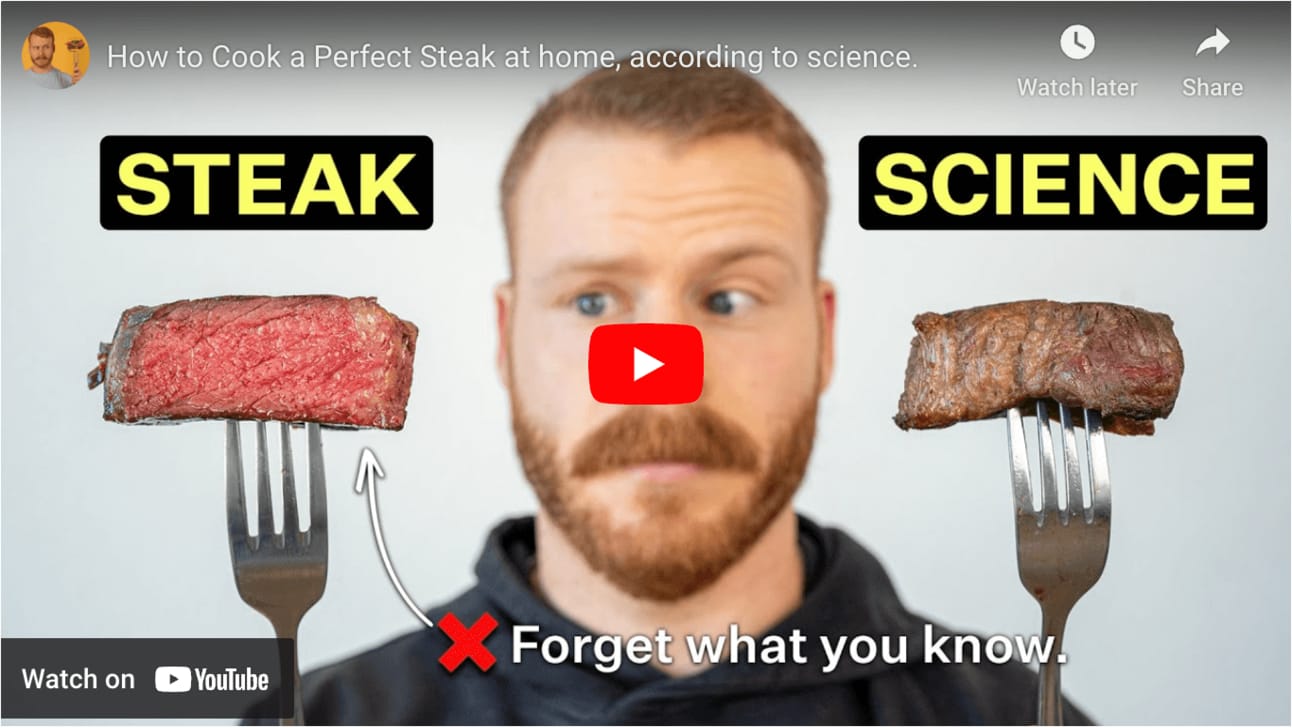 But how big is the difference? Probably negligible compared to more significant variables in the steak cooking process, as discussed in the video recap above. What matters most for a juicy steak is 1) the final internal temperature, 2) the cut of meat, and 3) salting/dry brining ahead of time. Focus on those first, and you'll be in good shape!