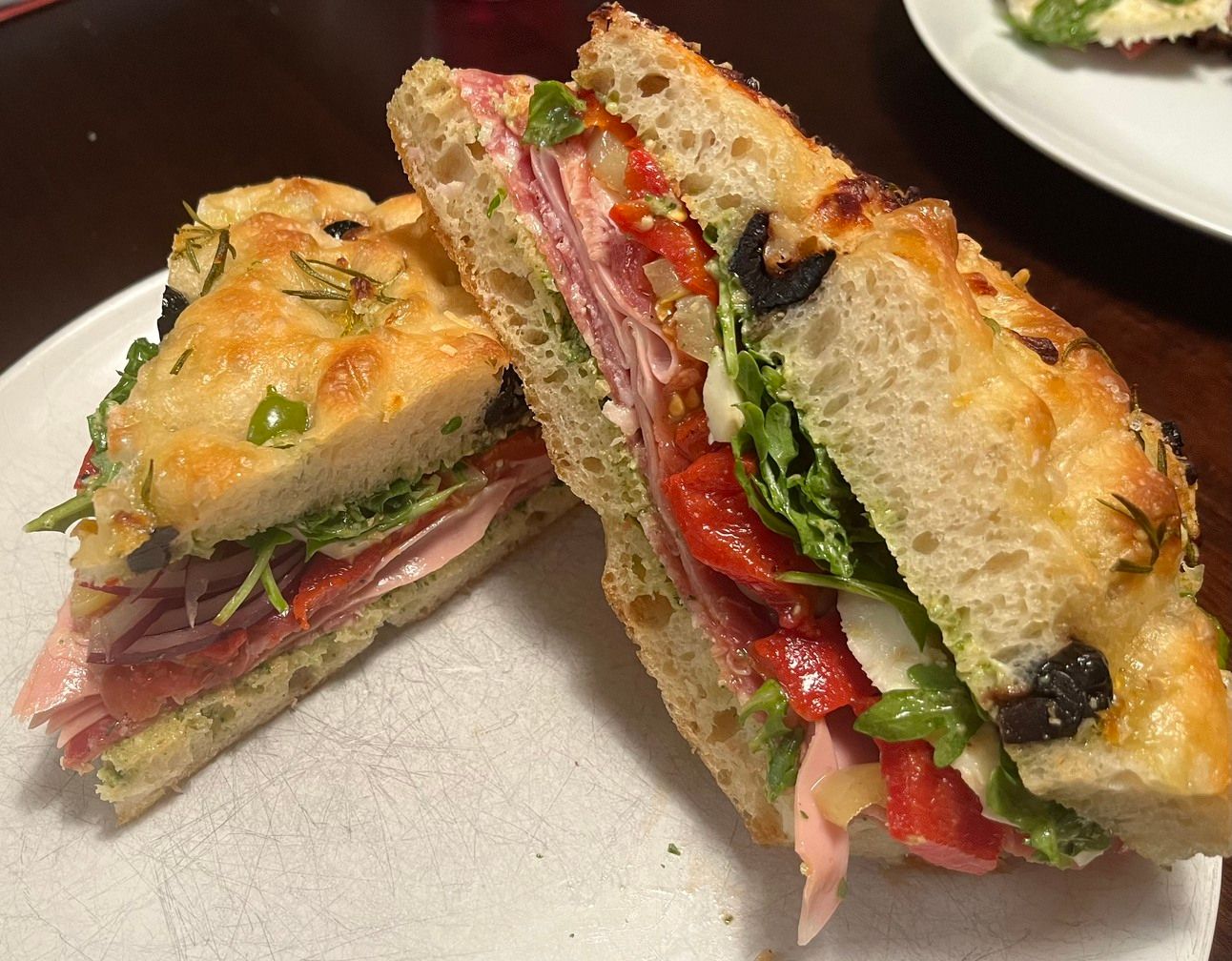 This week’s dinner winner is Michael Z, who baked a batch of Ethan’s focaccia with olives and a Parmesan crust and used it to make some Italian sandwiches. Well done!