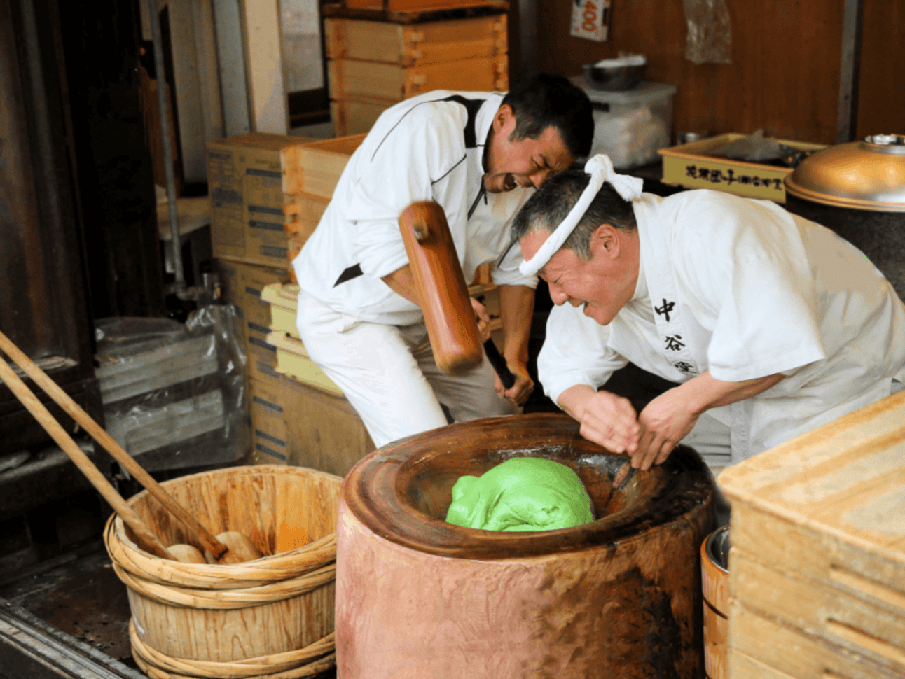 The pounding aerates the gelatinized rice starch, yielding a distinct texture that is soft, chewy, and slightly sticky.