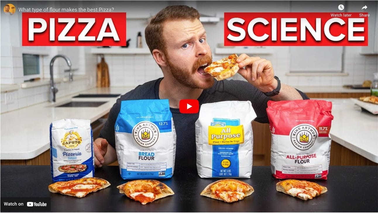 Video Results: While each flour produced a great slice, the premium flours were easier to work with and produced a more airy crust, thanks to the higher protein (and gluten quality) upgrades from All-Purpose.