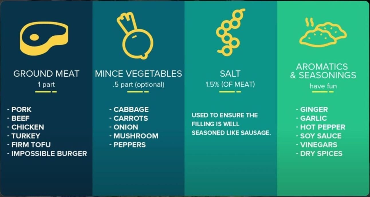 They are also flexible — once you understand the gyoza filling equation you can use any kind of ground meat, vegetables, or seasonings.